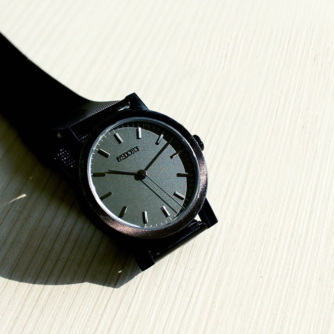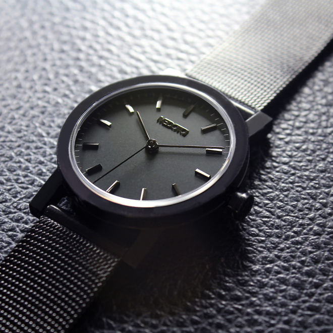 極簡輕薄系列–倒影款獨創0.8mm厚度斜面12時位設計的錶款,透過細緻工藝製作成的指針及不銹鋼錶身搭配,傳遞出濃濃復古時尚感。錶款錶面採用抗磨損藍寶石水晶玻璃而機芯則選用瑞士製,是款男女皆可配戴的情侶錶,另可搭配尼龍錶帶。