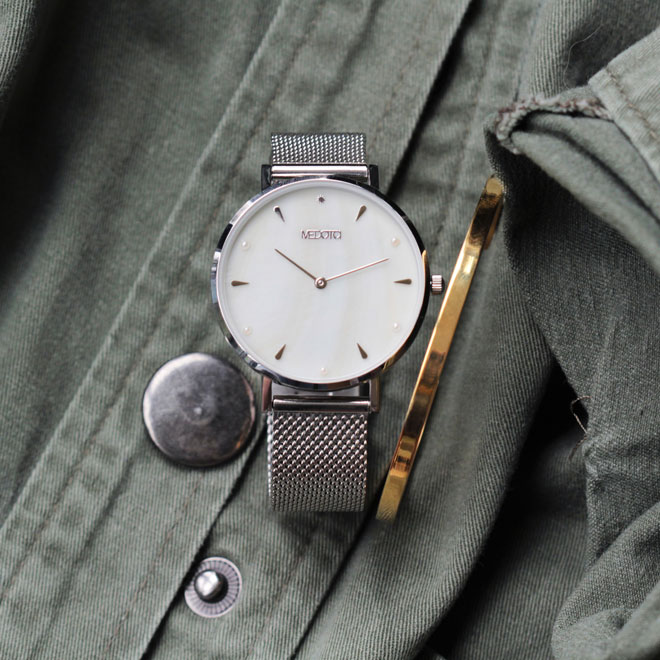 以希臘神話海洋女神名字命名的Thetis,靈感來自於浪漫的大海,將海洋中珍貴的貝殼作為錶款的主要基底,再運用美麗的珍珠點綴手錶的精緻感,錶殼與錶帶的部分則是以不鏽鋼為主。