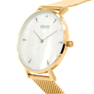 以希臘神話海洋女神名字命名的Thetis,靈感來自於浪漫的大海,將海洋中珍貴的貝殼作為錶款的主要基底,再運用美麗的珍珠點綴手錶的精緻感,錶殼與錶帶的部分則是以不鏽鋼為主。
