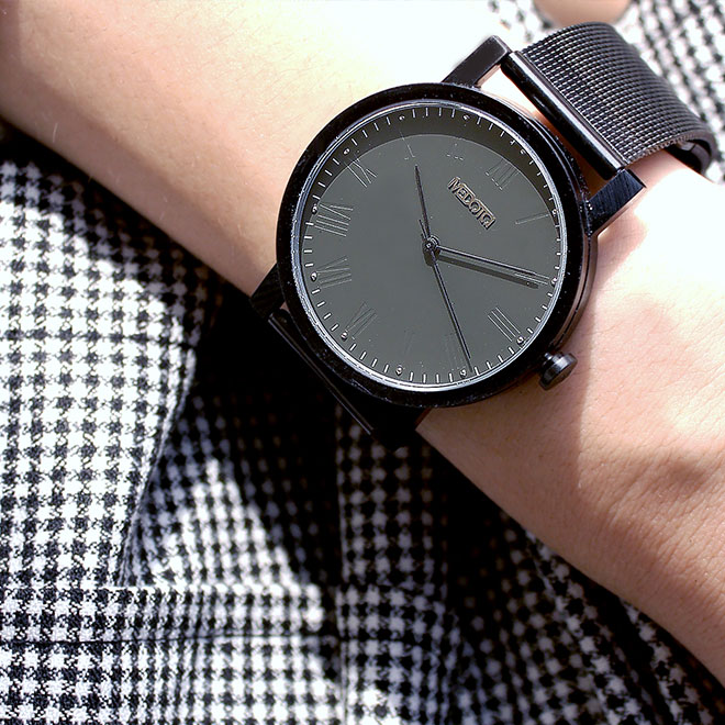 極簡輕薄系列–純粹款以極簡主義為設計主軸,潔淨優雅的錶盤及凹痕設計而成的羅馬數字與細緻工藝製作成的指針和不鏽鋼錶身搭配之下,傳達出最初與簡單的涵義,全錶款採用不銹鋼材質,並採用抗磨損藍寶石水晶玻璃及瑞士機芯。也是男女皆可配戴的情侶錶,另可搭配尼龍錶帶。