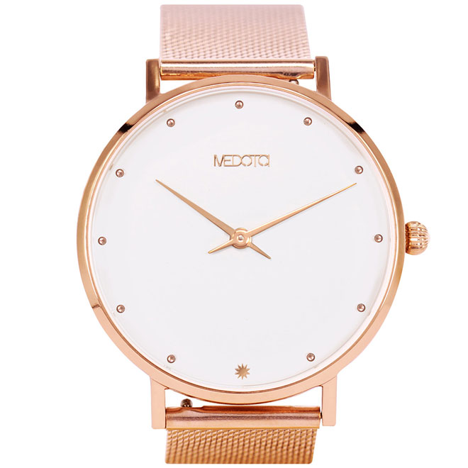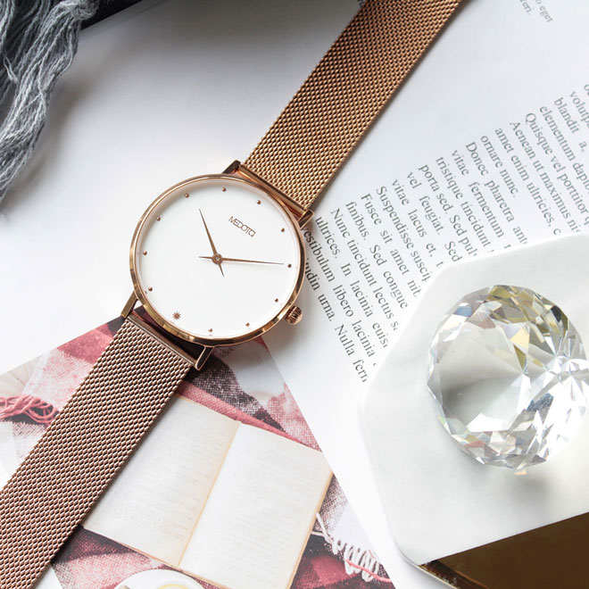 Chica系列是設計師透過簡單的顏色搭配,以最純粹、無過多裝飾的設計展現出不同面貌的女孩,搭配上不鏽鋼錶帶,為整體添上些倔強可愛的氣息