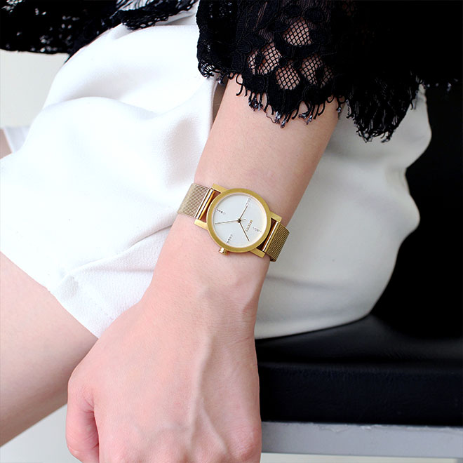 極簡輕薄系列–奢華款潔淨錶盤搭配閃爍施華洛世奇晶鑽製作的4時位設計,在任何場合都能成為焦點,展現出現代男女追求多變的有趣生活態度,是款不容錯過的亮眼錶款,全錶款採用霧面絲紋不銹鋼材質,並採用抗磨損藍寶石水晶玻璃及瑞士機芯。無論是情侶或是閨蜜都適合的對表,另可搭配尼龍錶帶。