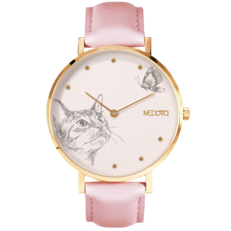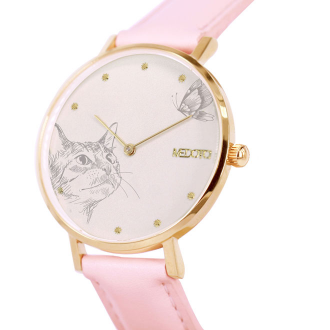 Love系列以可愛的手繪動物作為主題,搭配上精緻的小錶面與粉色真皮錶帶