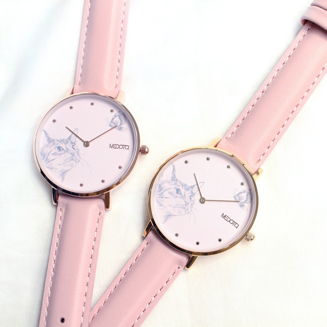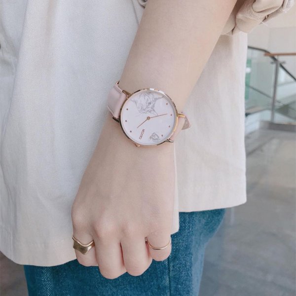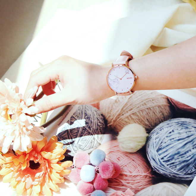 Love系列以可愛的手繪動物作為主題,搭配上精緻的小錶面與粉色真皮錶帶