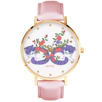 以經典小錶面呈現,搭配上插畫家細緻可愛的貓咪圖案,整體以柔和色系為主,每日戴上他,都將會有個開心完美的一天