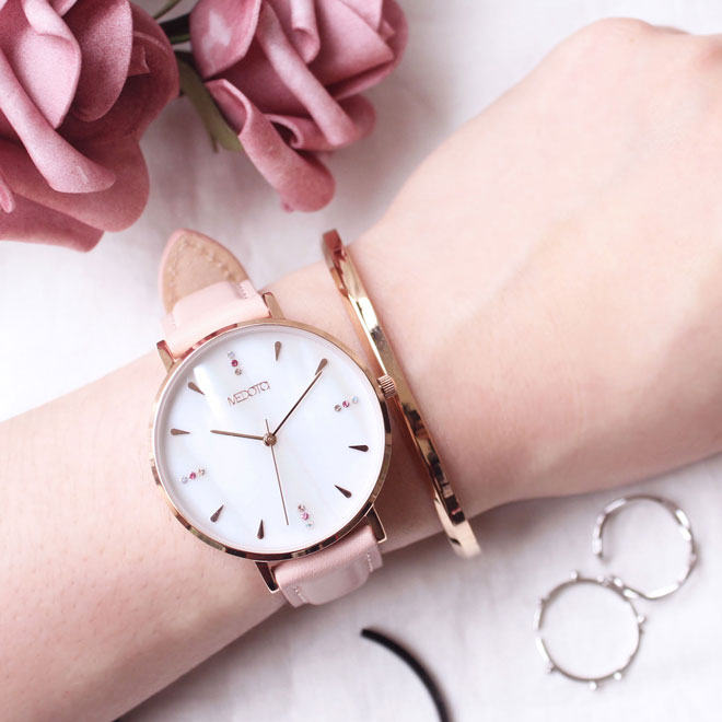 將柔和的貝殼錶面搭配上耀眼動人的鑽石,在與法國進口真皮錶帶做結合,使整體錶款增添幾分個性感詮釋出一位耀眼動人女性擁有勇敢外表和溫柔的內心的特質