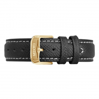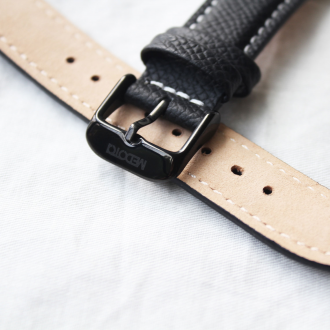 真皮錶帶 - 法國進口黑色荔枝紋真皮錶帶-金釦
