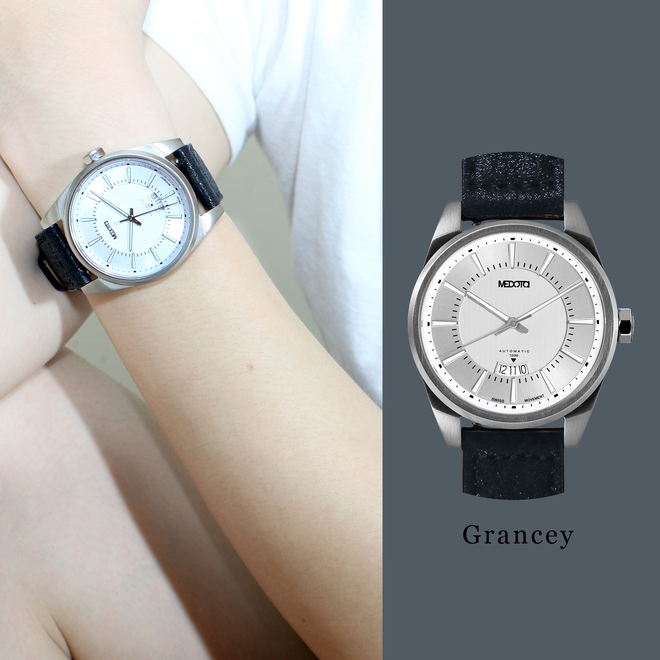 Granvey 伊頓系列帶給新時代男性一個別於市場的選擇。跳出極為陽剛堅硬的男錶,Grancey 伊頓系列運用小區塊不同材質的搭配,傳達您若隱若現的獨特內涵與智慧,看似平庸卻娓娓道出您的溫柔婉約與成熟穩重,您也可以選擇小部分的顏色變化錶款,來表現您風趣幽默的一面。