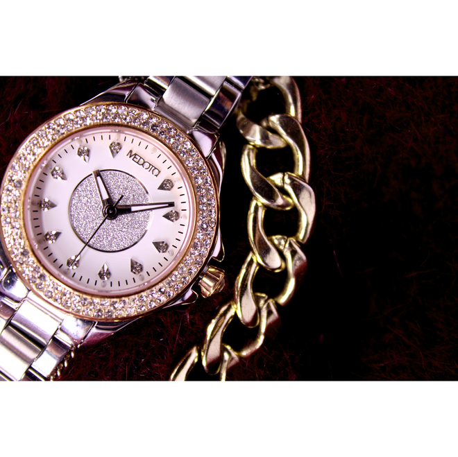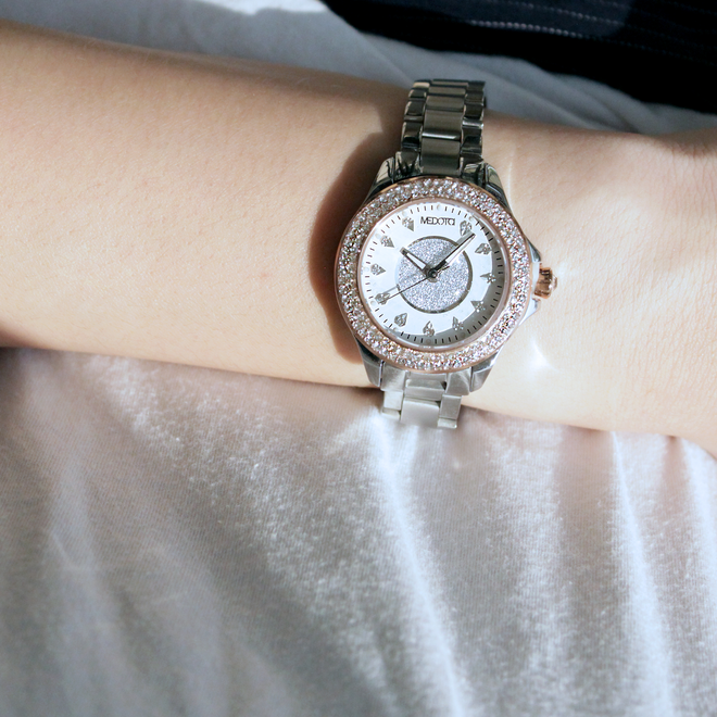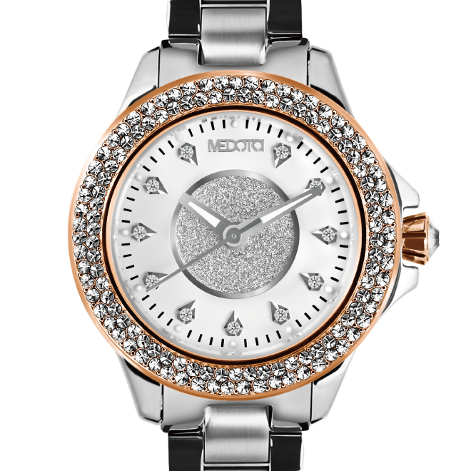 Farfalla.D 法蝶系列運用少見的閃粉做為核心,搭配銀的特殊切割作為小時辨識,鑲上精細工藝加工後的寶石,營造華麗且脫俗的氣質,如同皇室般高尚典雅,受人尊敬,以較寬的時分針來加強時間的辨識度,傳達您的正直爽朗,配上夜光,在夜晚也能夠清晰的讀出時刻。