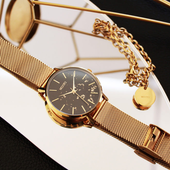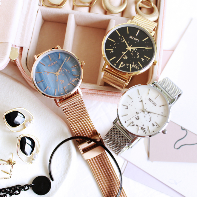 Twinkle系列以天然貝殼錶面為基底,錶面上的點點如繁星璀璨,閃耀出溫暖的光芒,象徵不管喜悅或寂寞,都有我們陪著妳