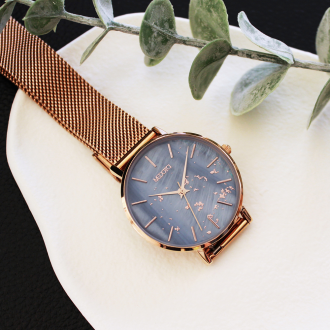 Twinkle系列以天然貝殼錶面為基底,錶面上的點點如繁星璀璨,閃耀出溫暖的光芒,象徵不管喜悅或寂寞,都有我們陪著妳