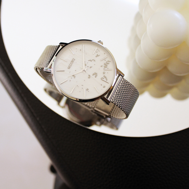 Twinkle系列以天然貝殼錶面為基底,錶面上的點點如繁星璀璨,閃耀出溫暖的光芒,象徵不管喜悅或寂寞,都有我們陪著妳