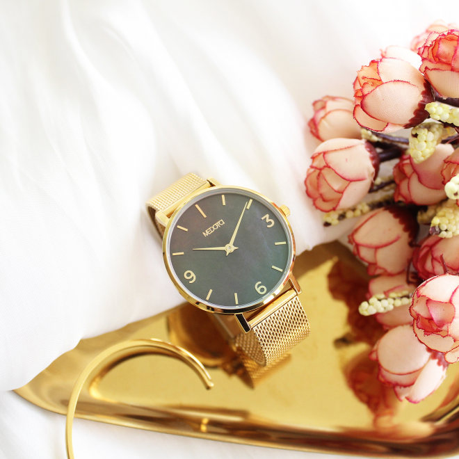 珍珠母貝具有獨特天然的紋路,透過精細的處理製成錶面,使配戴時,隨著不同角度的變化,