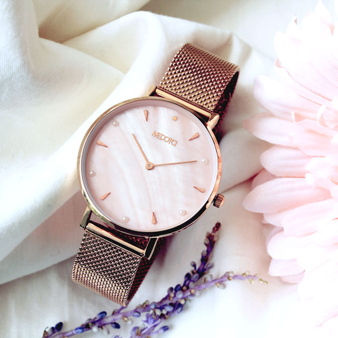 以希臘神話海洋女神名字命名的Thetis,靈感來自於浪漫的大海,將海洋中珍貴的貝殼作為錶款的主要基底,再運用美麗的珍珠點綴手錶的精緻感,錶殼與錶帶的部分則是以不鏽鋼為主。