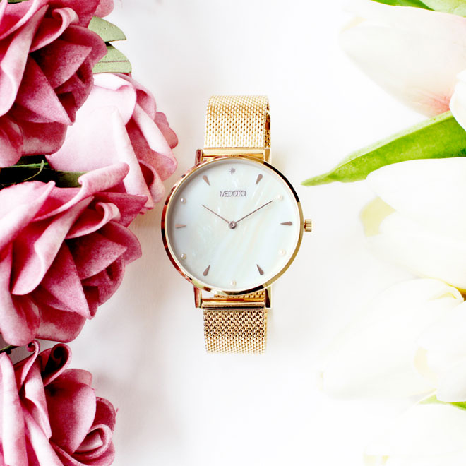 以希臘神話海洋女神名字命名的Thetis,靈感來自於浪漫的大海,將海洋中珍貴的貝殼作為錶款的主要基底,再運用美麗的珍珠點綴手錶的精緻感,錶殼與錶帶的部分則是以不鏽鋼為主。