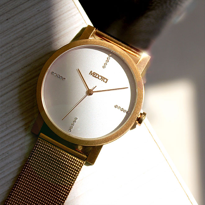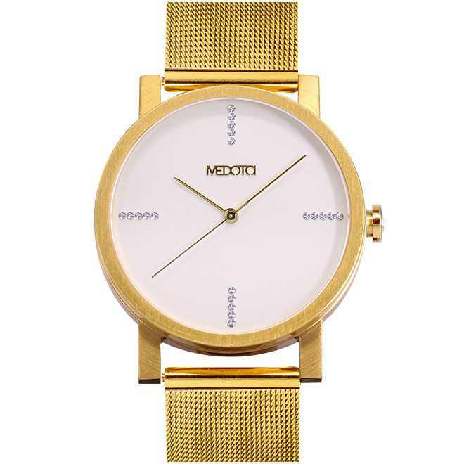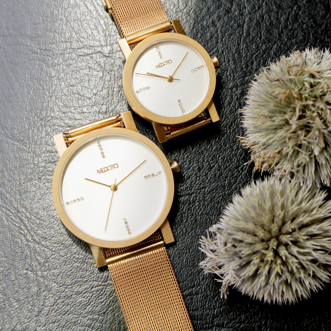 極簡輕薄系列–奢華款潔淨錶盤搭配閃爍施華洛世奇晶鑽製作的4時位設計,在任何場合都能成為焦點,展現出現代男女追求多變的有趣生活態度,是款不容錯過的亮眼錶款,全錶款採用霧面絲紋不銹鋼材質,並採用抗磨損藍寶石水晶玻璃及瑞士機芯。無論是情侶或是閨蜜都適合的對表,另可搭配尼龍錶帶。