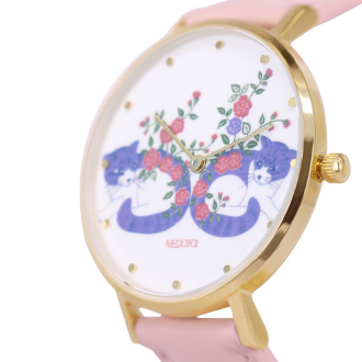 以經典小錶面呈現,搭配上插畫家細緻可愛的貓咪圖案,整體以柔和色系為主,每日戴上他,都將會有個開心完美的一天