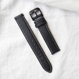 真皮錶帶 - 法國進口黑色荔枝紋真皮錶帶-咖金釦