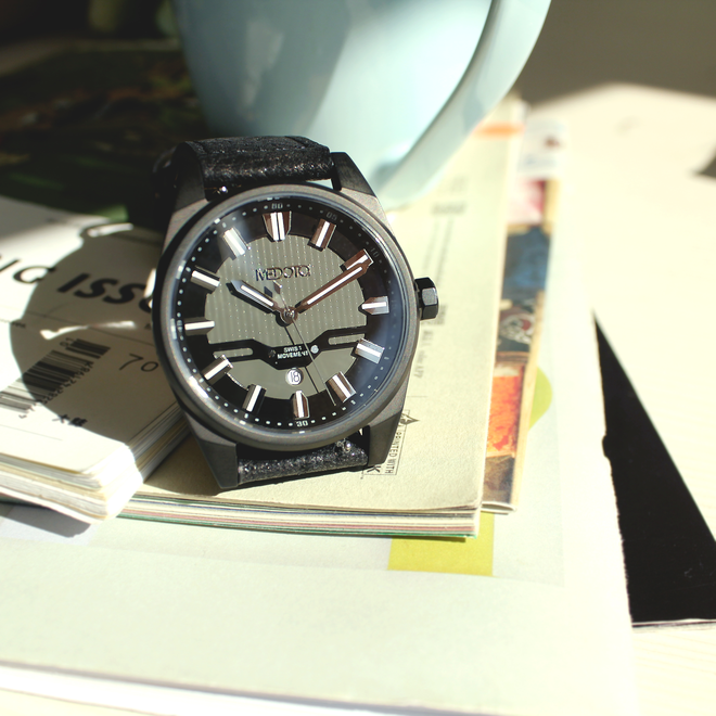 Caelum 飛行腕錶運用空軍的造型元素來設計,傳達給人感覺剛毅的軍錶形象。Caelum 飛行系列使用主題特性來代表成熟男性的基本特質,以強壯、威凜與個性的形象呈現。